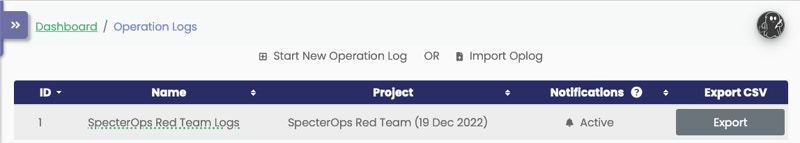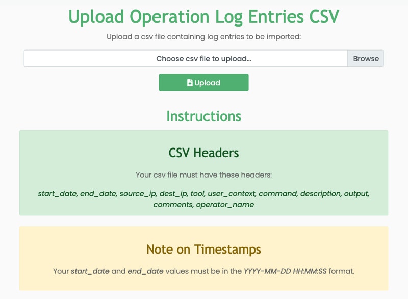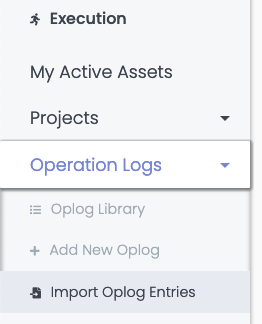 To import a CSV log file, open the Operation Logs menu in the sidebar and click Import Oplog Entries: