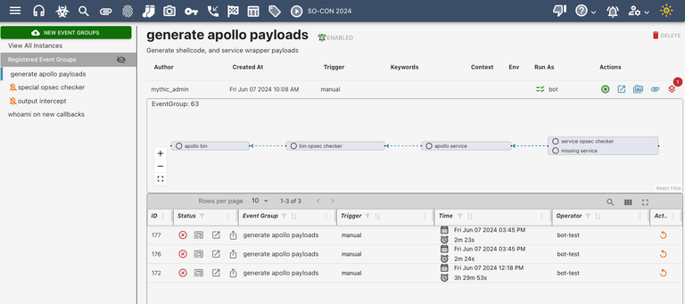 Eventing is a way to automatically perform actions based on some “event” within Mythic. The format and flow for this was heavily modeled after GitHub Actions, so if you’re familiar with that then this should come pretty easily.Components