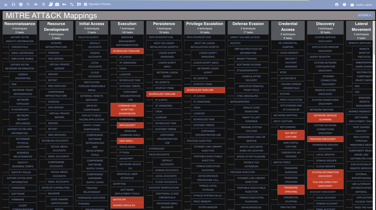 MITRE ATT&CK is a knowledge base of adversary tactics and techniques mapped out to various threat groups. It provides a common language between red teams and blue teams when discussing operations, TTPs, and threat hunting. For Mythic, this provides a great way to track all of the capabilities the agents provide and to track all of the capabilities so far exercised in an operation. For more information on MITRE ATT&CK, check out the following:Where is it?